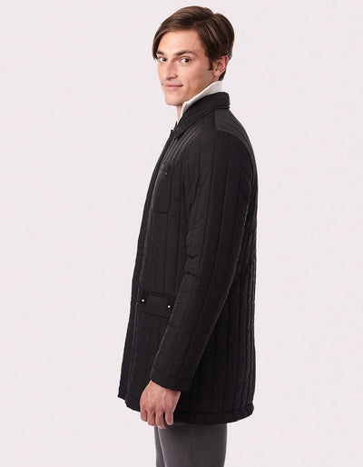 This men's jacket comes with sustainable style thanks to a shell and lining fully made from recycled materials and Ecoplume™ insulation from recycled plastic bottles. Vertical quilted columns create clean lines for a sophisticated design. The mid-length puffer is water resistant, too.