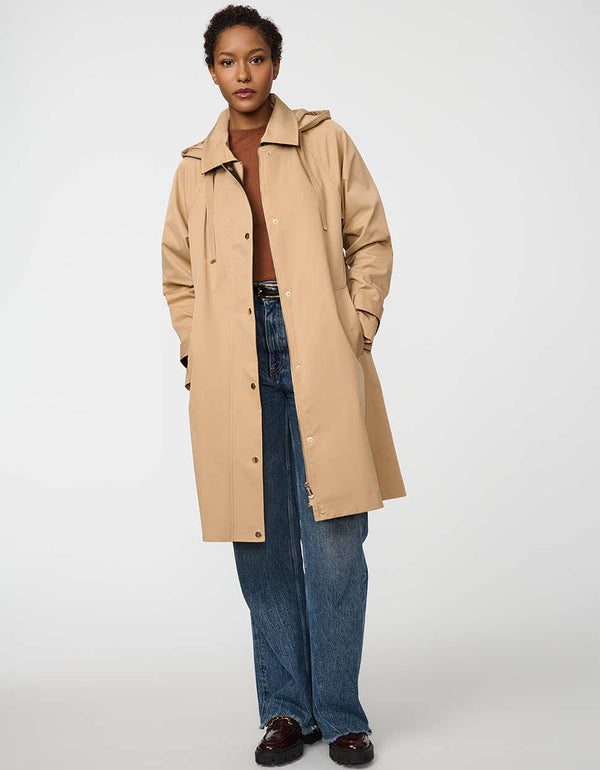 Effortlessly modern, the Clayton Rain Coat features an oversized fit, snap-off hood, and button-flap zip closure. This water-repellent trench coat offers a relaxed yet refined style, ideal for layering through transitional seasons.