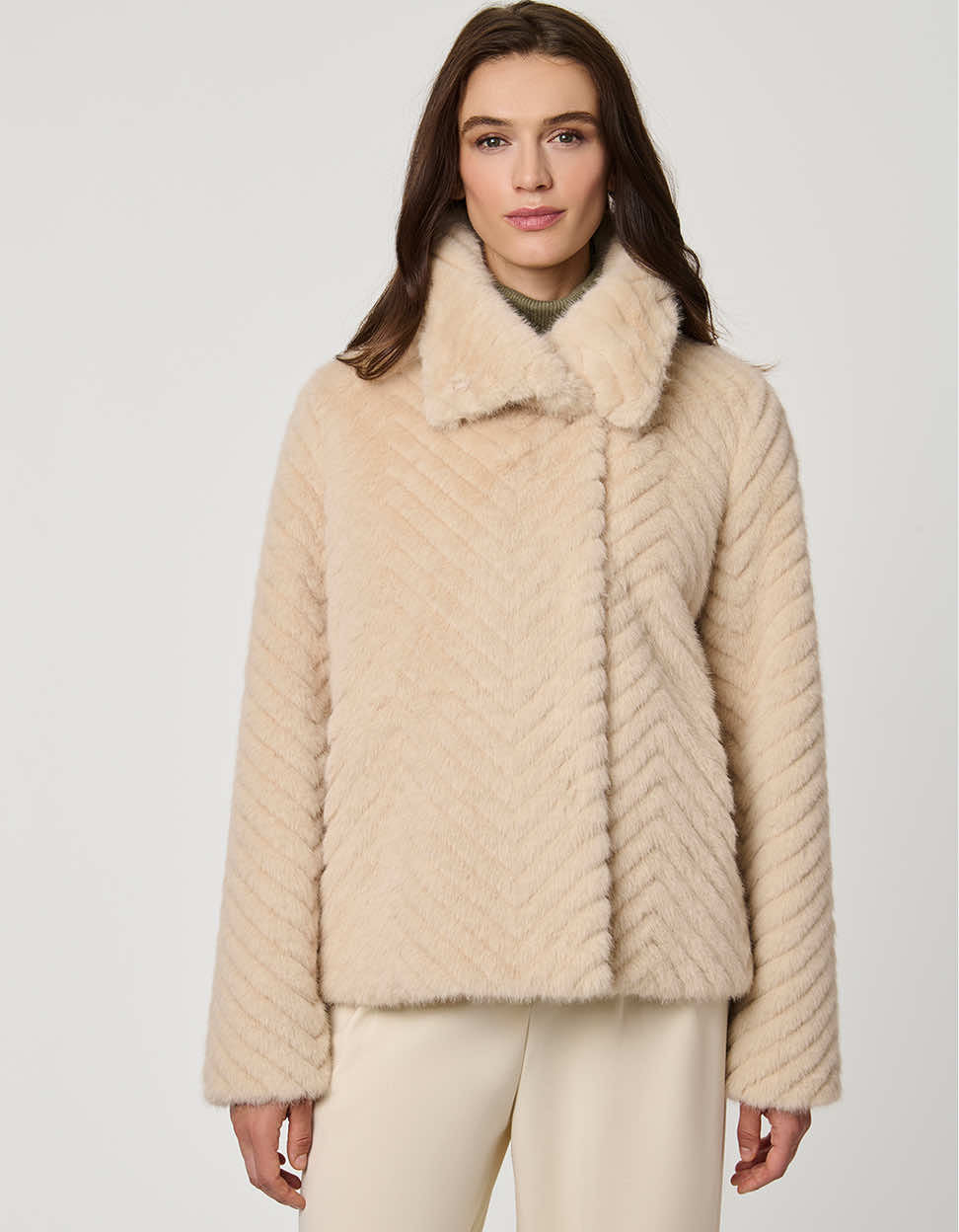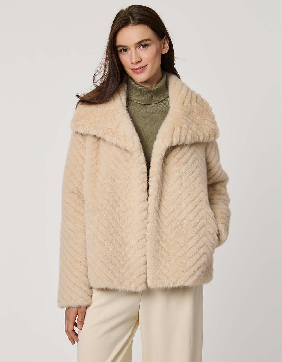 The Echelon Beige Faux Fur Coat boasts a refined, classic fit with a hip-length cut that combines sophistication with comfort. Its extra-large collar and wide sleeves introduce a touch of dramatic flair, ensuring both style and warmth. Crafted from beige faux fur, this coat provides luxurious insulation that doesn't skimp on style.