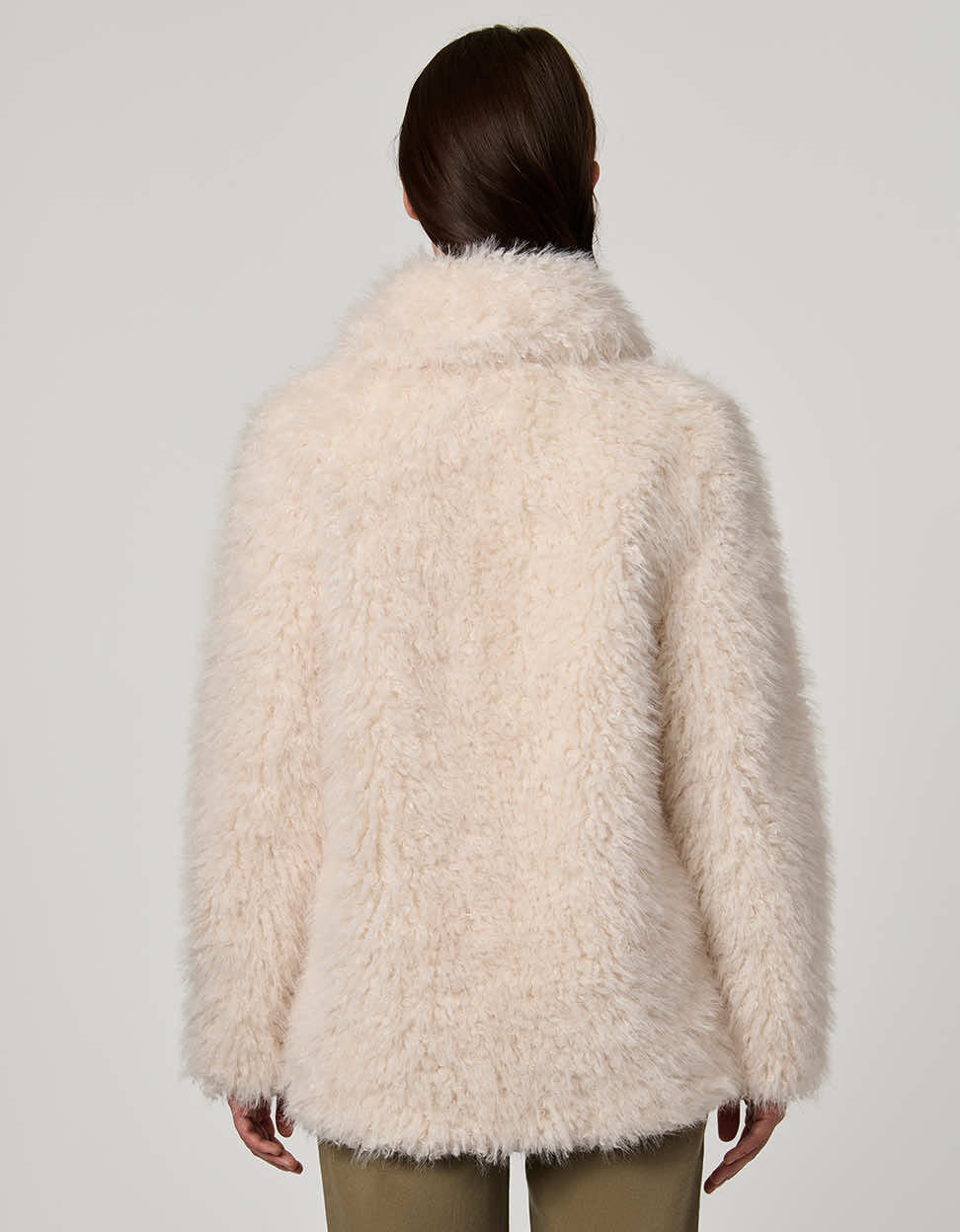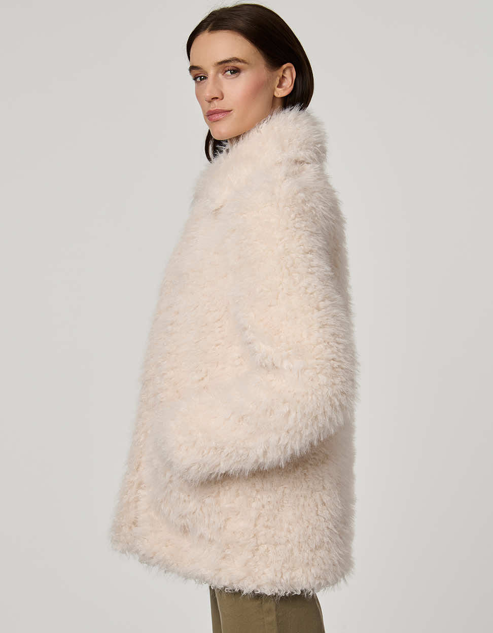 This hip-length faux fur coat pairs classic fit tailoring with a plush feel. A classic collar and discreet clip closures add refined detail, while patch pockets offer practical style. The Langley Coat is a sophisticated, cozy layer designed to elevate everyday cold-weather coziness.