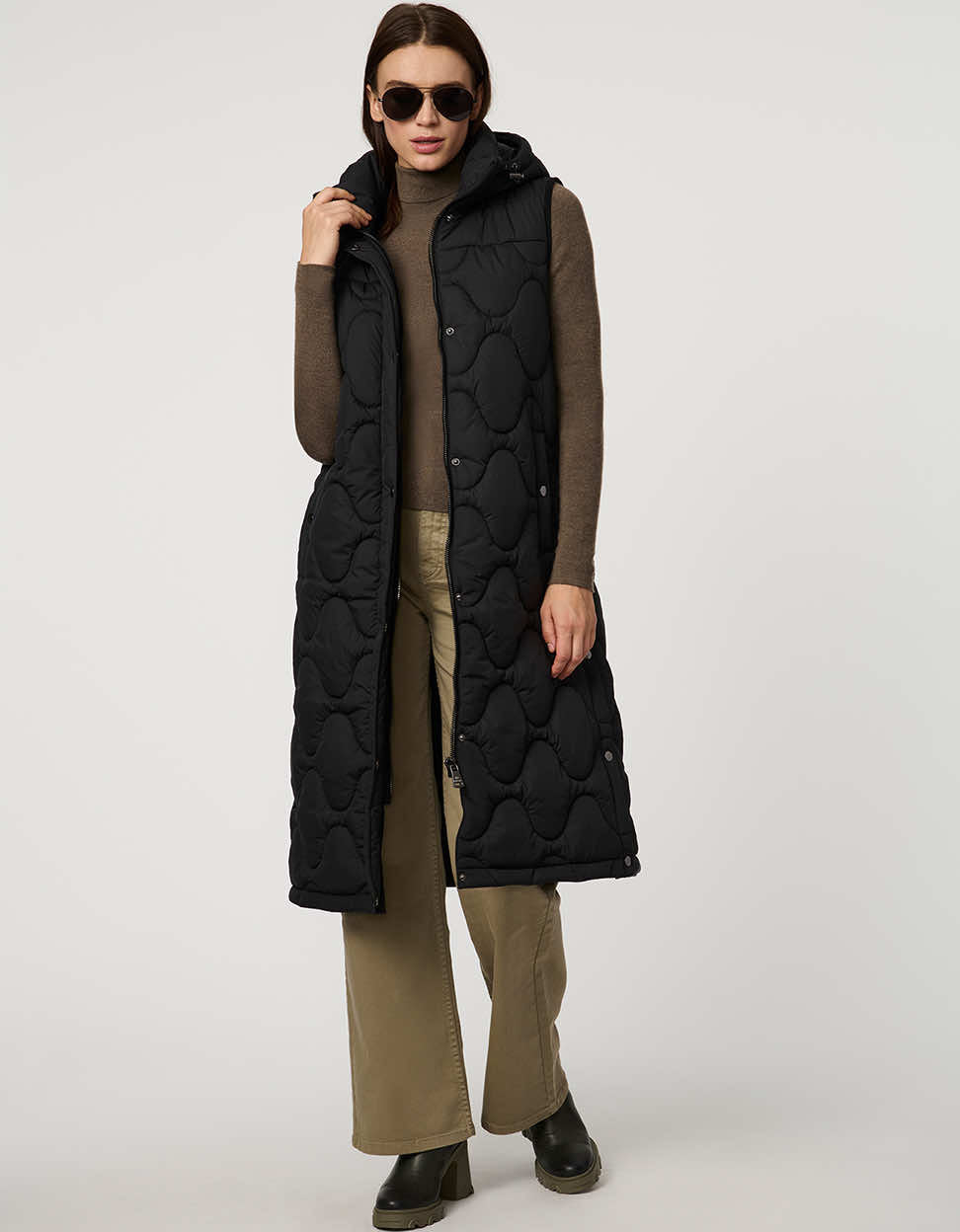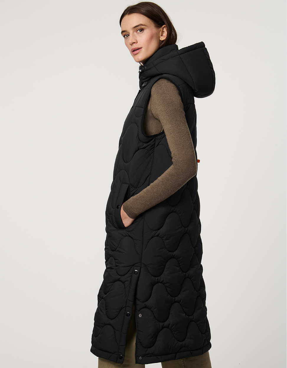 Made for winter, this women's puffer vest hits below the knees in a walker length with an oversized fit for cozy comfort. The quilted pattern and longer design create a slimming visual, while the Ecoplume™ insulation keeps you warm without bulk (and gives sustainable style points). Customize the puffer vest with the zip-off hood for two great looks in just one buy. Details include triple-snap side vents, snap closures and pockets.