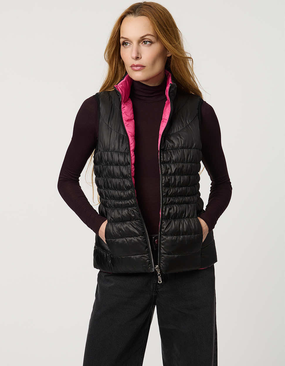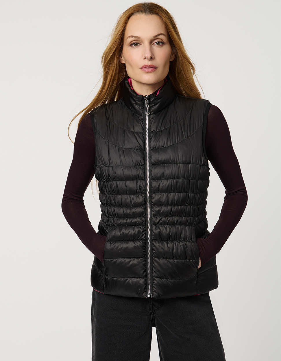 Show your support in style with Bernardo’s limited-edition Breast Cancer Awareness Reversible Puffer Vest. Designed with versatility in mind, this lightweight vest features two looks in one—sleek black on one side and bold pink on the reverse. The figure-flattering quilted design is designed to streamline the silhouette, offering warmth without bulk. Finished with a zip-front closure and easy layering fit, it moves seamlessly from activewear to everyday essentials. Thoughtfully crafted with a commitment to comfort and purpose, this vest not only elevates your fall wardrobe but also raises awareness.
