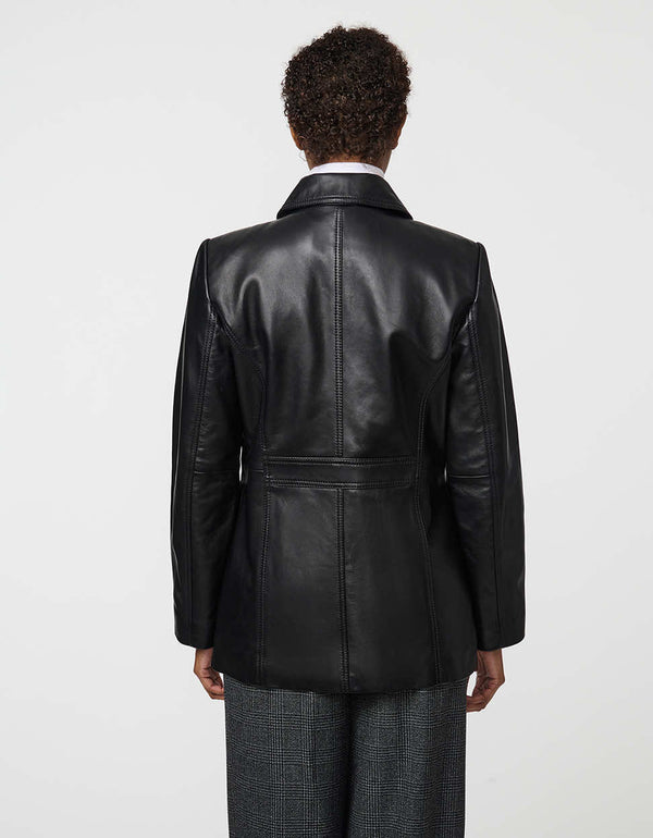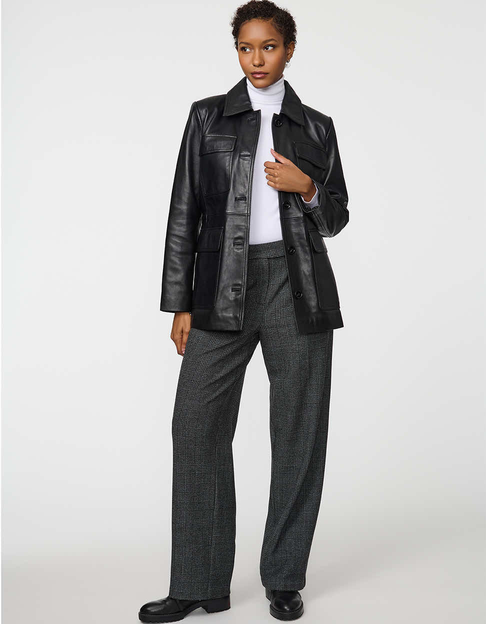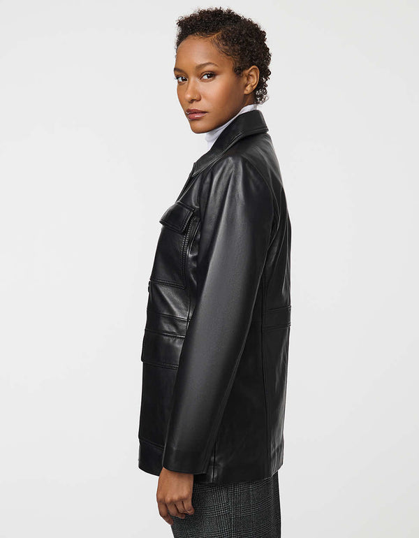 This Sinclair Leather Shirt Jacket is a modern nod to classic tailoring, reimagined in sleek, structured leather. Crafted from supple lamb leather, this longline silhouette features a sharp collar, statement patch pockets, and bold button-front closures. Designed with clean lines and minimal hardware, it blends utilitarian edge with elevated polish. With its classic fit, this coat is the perfect balance of style and functionality.